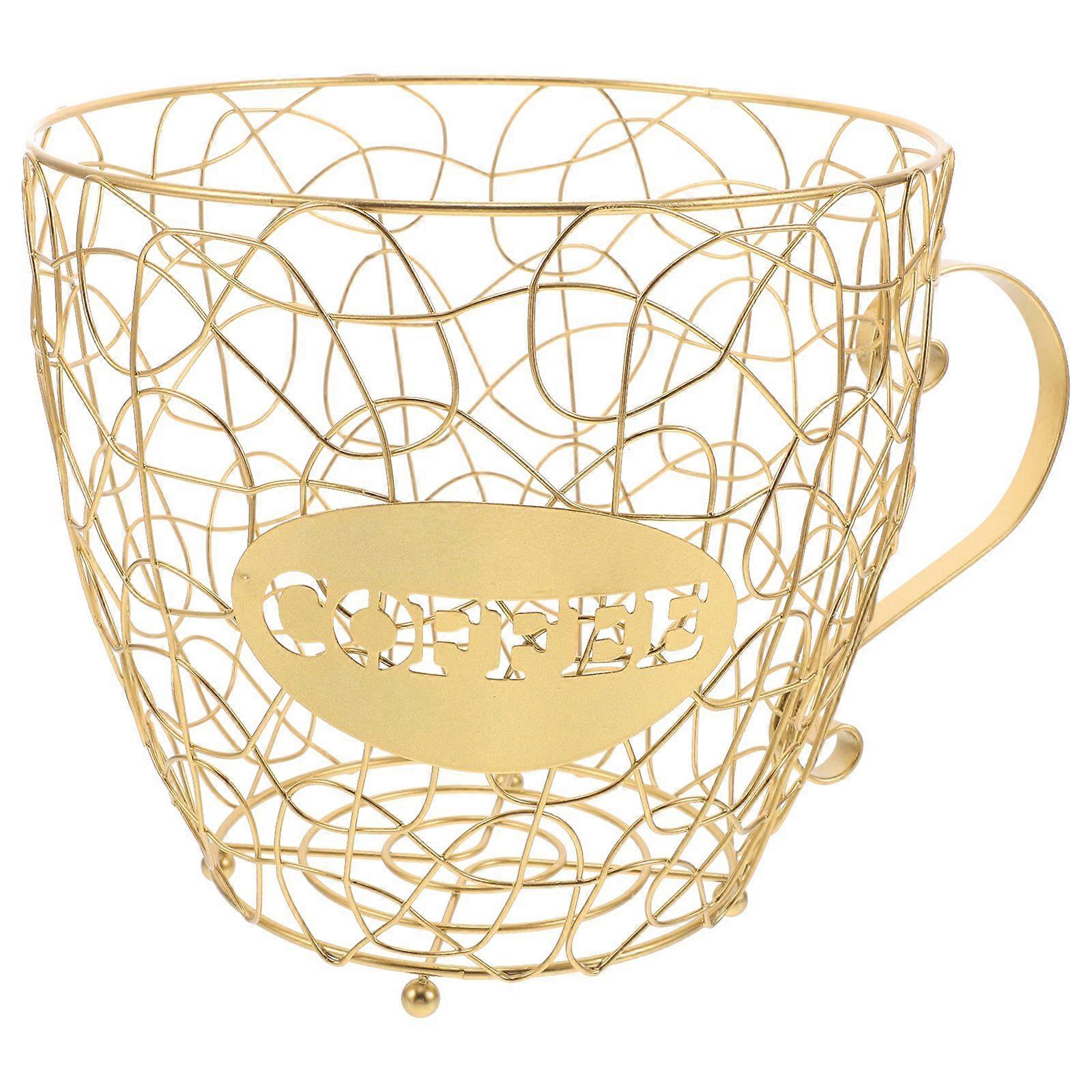 Espresso Pod Holder - Golden Iron Cup Shaped Coffee Capsule Storage Basket - Metal Kitchen Organizer Rack For Bar Countertop Fruit Home Parties & Holi