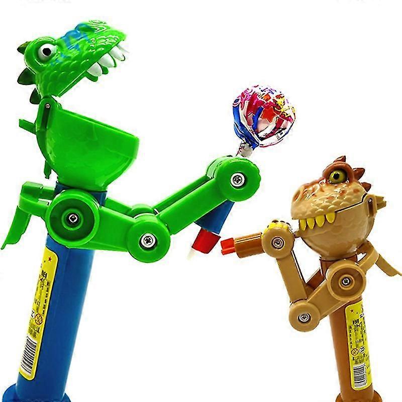 Creative design, cartoon toys, fun, stress relief toys. The perfect gift for kids, press and hold the button on the back of the product to put the lollipops in a save state and eat them next time. Good ingredients, no plastic smell. A great gift for family or friends. Food grade ABS material, BPA-free, eco-friendly, wear-resistant and durable. Ability training: brain use, grasping, interest training, development, hand-eye coordination, parent-child communication, interactive toys. Creative Gifts: Great gifts for family or friends. Fun toys: creative design, cartoon toys, endless fun. How to play: Long press the switch to extend the robot arm and put the lollipop into the arm; press the switch to automatically deposit the lollipop into the robot. Specifications: Name: Dinosaur Robot Lollipop Material: ABS Size: 16cm Color as shown Package Included:1x Dinosaur Robot Lollipop Notes: 1. Due to the different monitor and light effect, the actual color of the item might be slightly different from the color showed on the pictures. Thank you 2. Please allow 0.1-2cm measuring deviation due to manual measurement.