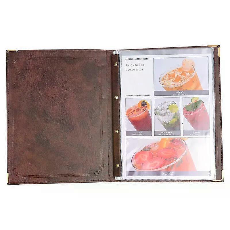 A4 Thick Durable PU Leather Menu Holder For Restaurant 7 Sheets Pocket Card Display Folder Black Brown Wine