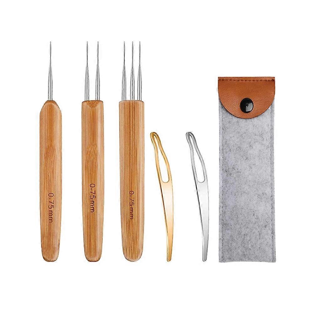 Hair Crochet Needles 2Pcs 0.75Mm Dreadlocks Making Tools For Home Use And Hair Salon With Durable Wooden Handle
