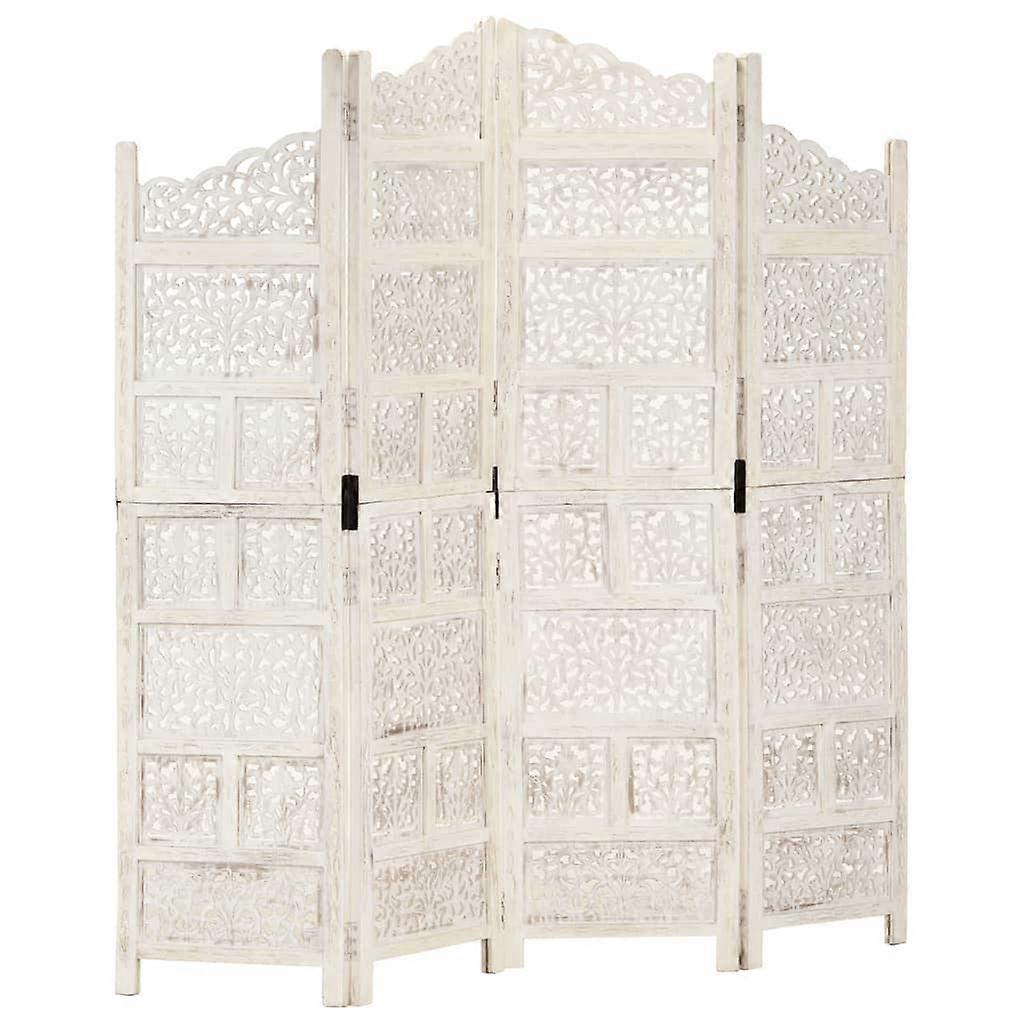 Vidaxl Hand Carved 4-Panel Room Divider White 160X165 Cm Solid Mango Wood