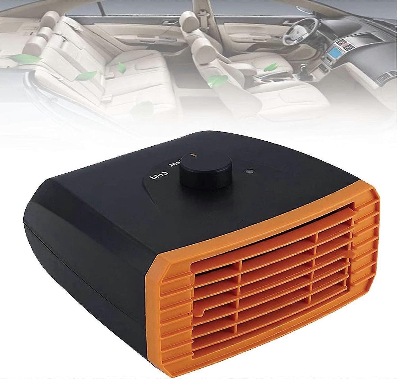 Car Flatbed Heater, Electric Fan Defroster, Plugged In Cigarette Lighter with 3.9ft / 1.2m Line for Car, Truck, Van (Size: Orange 24V)