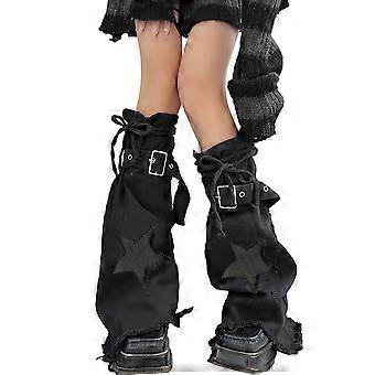 מחממי רגליים אופנתיים עם רקמת כוכבים שרוך מתכוונן Y2K כיסויי רגל רצועה נשים סגנון רחוב רגל מגפיים כיסוי שחור