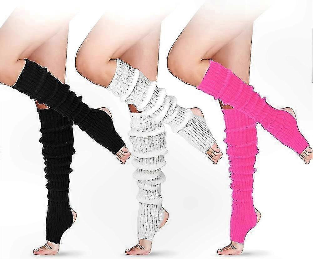 Women's Long Ribbed Leg Warmers - 24" Over-The-Knee Stretchy Knit for Yoga & Stirrup Use, 3 Pairs