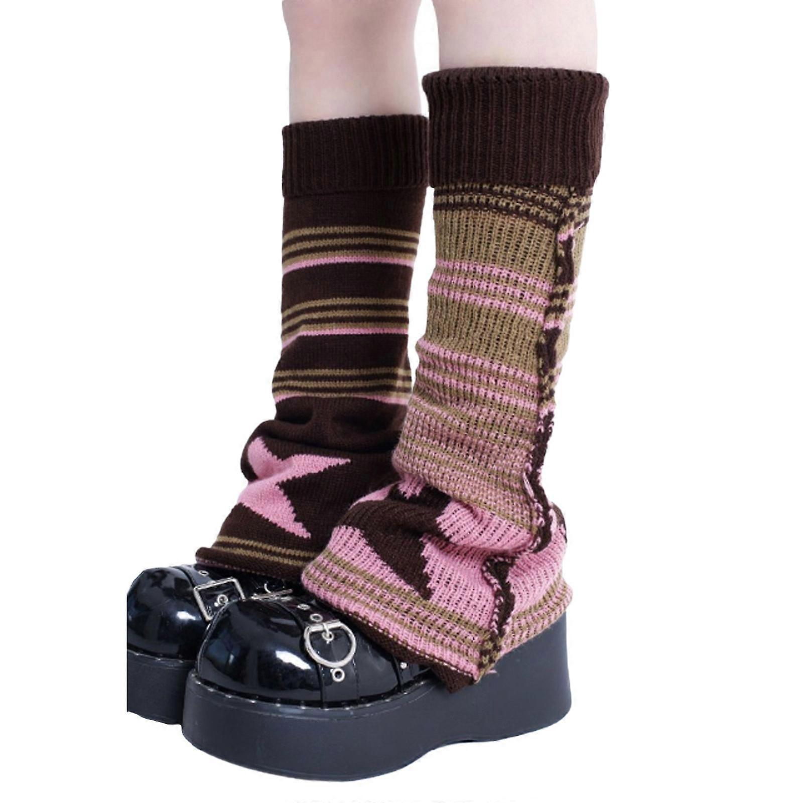 Sweet Long Leg Warmers for Women Girls Knitted Knee High Leg Warmers Foot Cover Striped Loose Socks Boot Cuffs Gift coffee pink