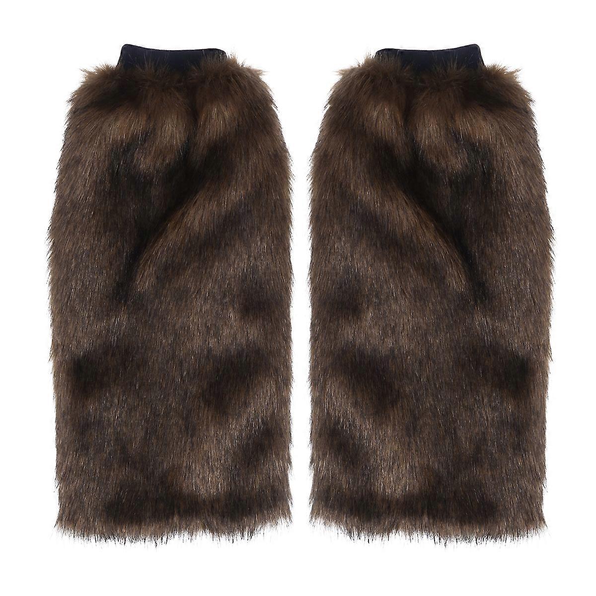 Women Brown Faux Leg Warmer 3Pcs Plush Long Boot Cuffs Cover