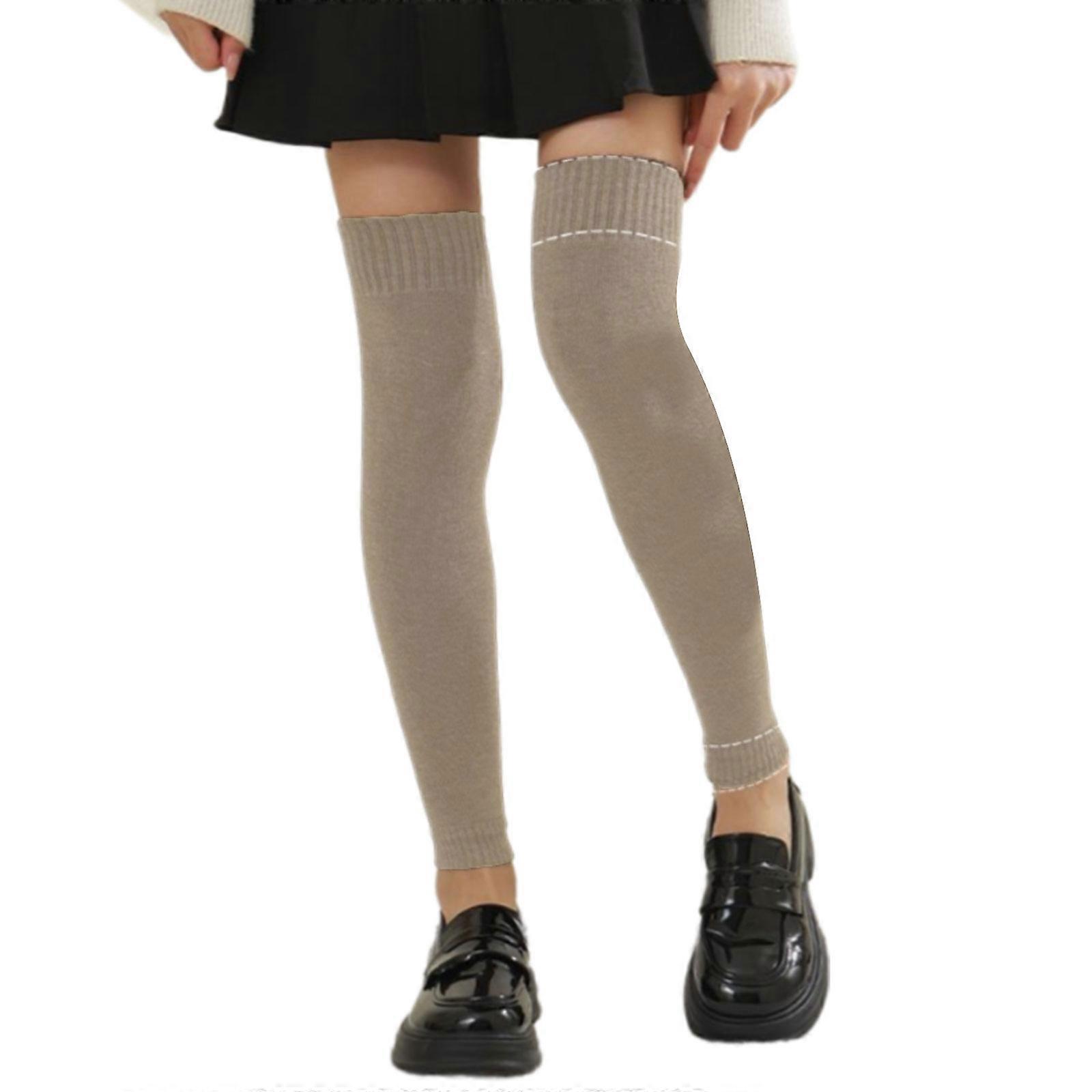 Women’s Winter Leg Warmers High Elastic Knee Sleeves Soft Thermal Socks For Outdoor Hiking Office Work Home Relaxation Khaki