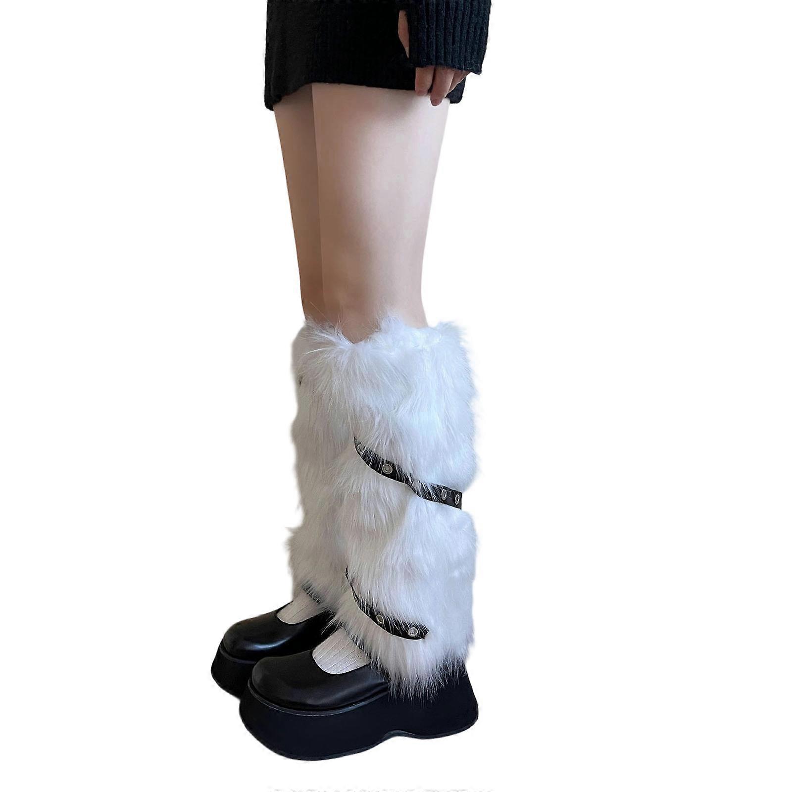 Women's Fuzzy Leg Warmers Winter Furs Furry Leg Warmers Soft Boot Cuffs Covers Halloween Cosplay Costumes White