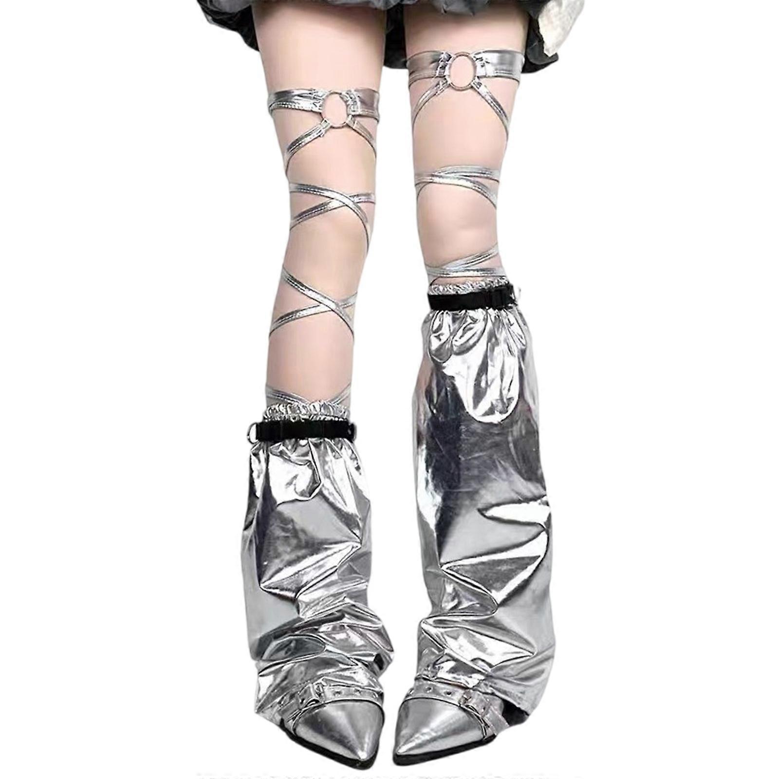 Women Leather Leg Warmer with Thigh Rings Flared Leg Socks Princess Leg Sleeves Halloween Cosplay Costumes Streetwear Multicolor