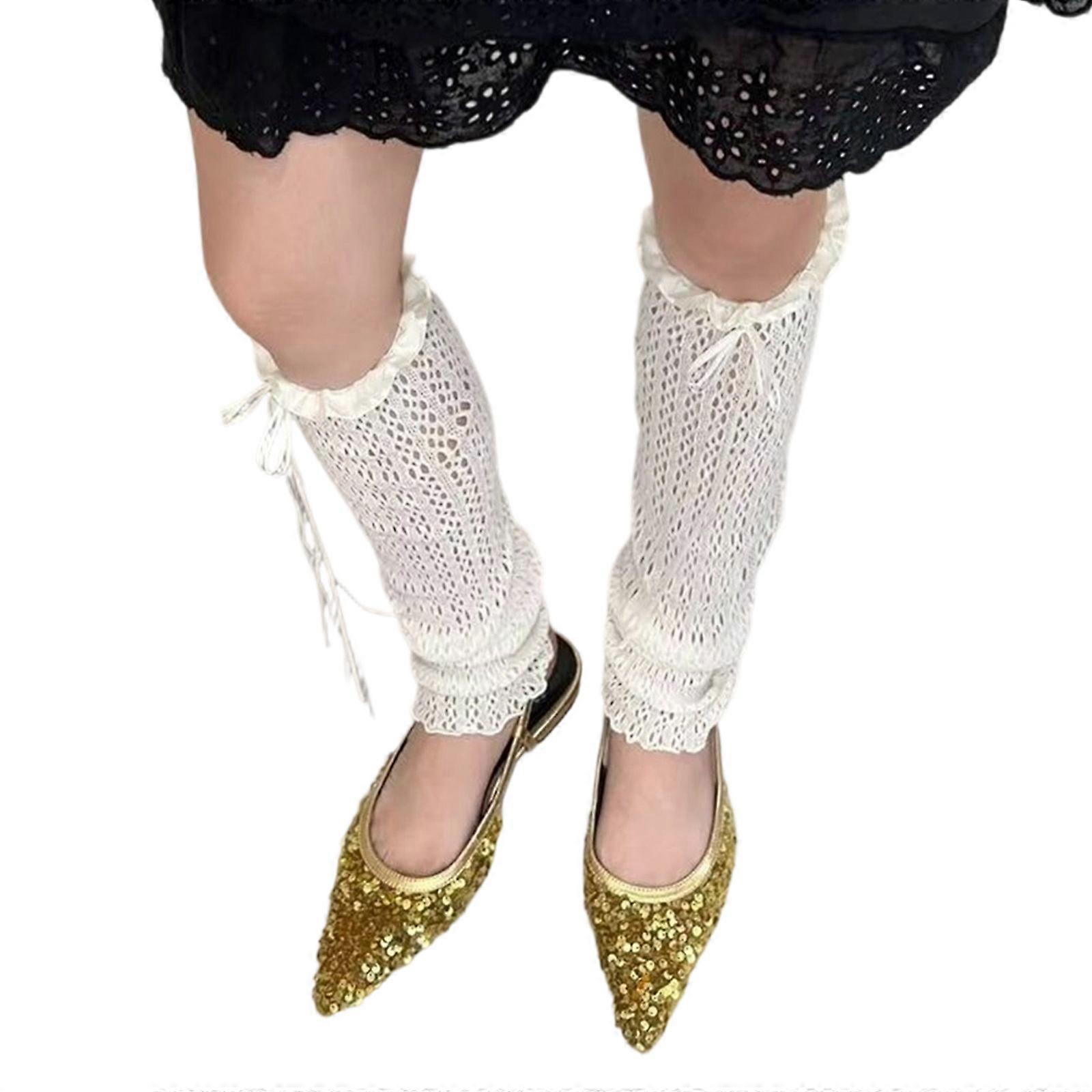 Breathable Mesh Fishnet Leg Arm Sleeves With Decorative Ribbon Detailing Multipurpose Nylon Fabric Leg Warmers for Women White