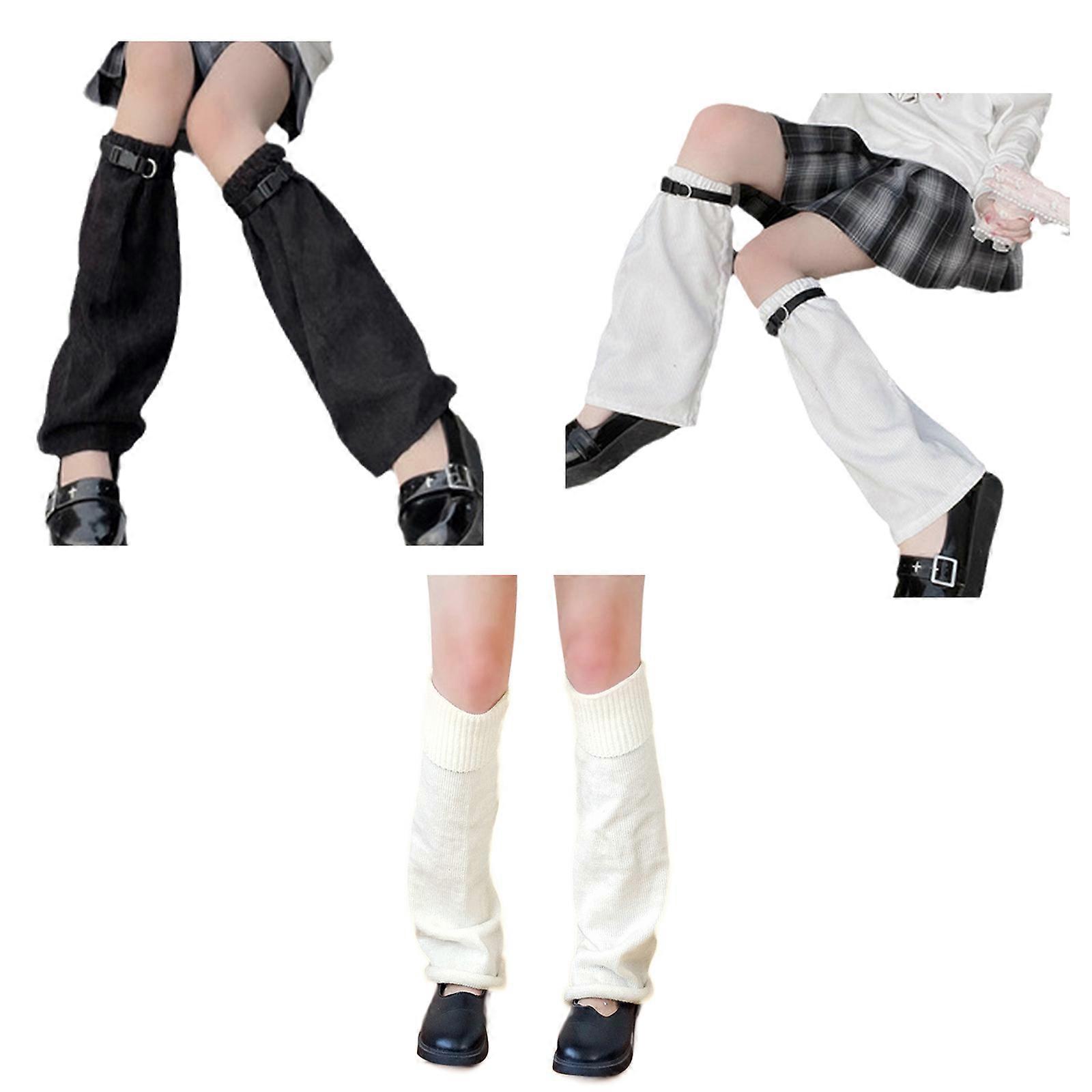 Flared Leg Warmers Women Kawaii Winter Loose Boot Stocking Girl Uniform Knitted White tube beam mout