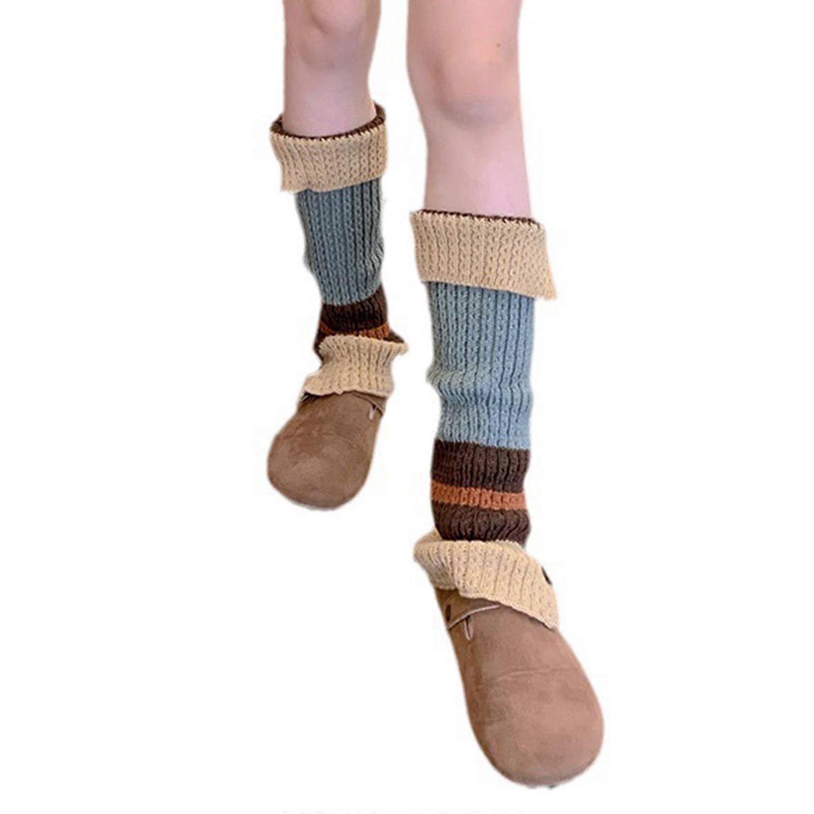 Womens Cute Knitted Leg Warmers Girls Vintage Punk Knee High Leg Socks Patchwork Stockings for Dress Skirt katuo