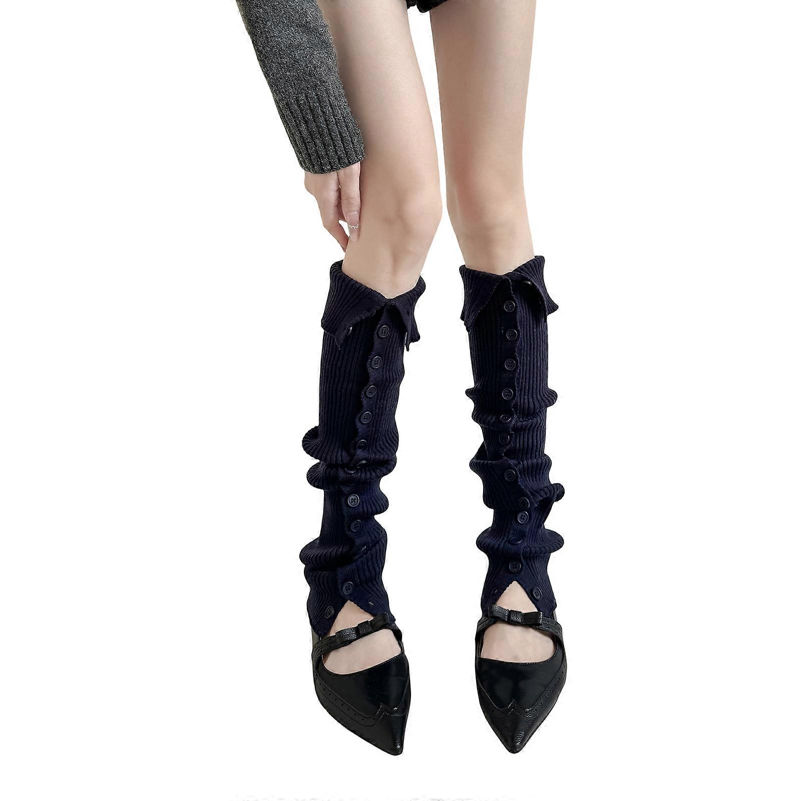 Stylish Snap Closure Leg Warmers Premium Acrylic Leg Covers Thermal Protection Fall Winter Layering Essential Navy blue One Size