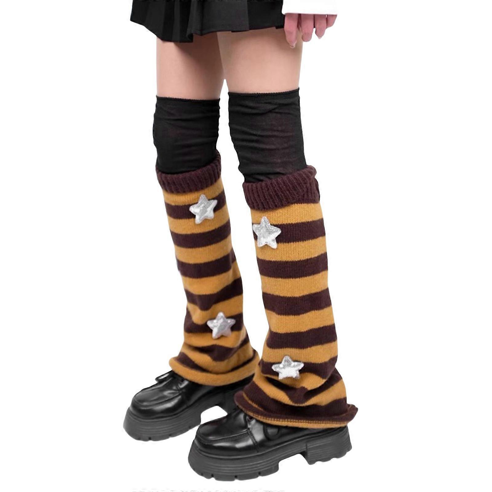 Punk Leg Warmers for Women Cute Star Knitted Flared Long Boot Covers with Over Knee Stockings Set Winter Fall Outfit