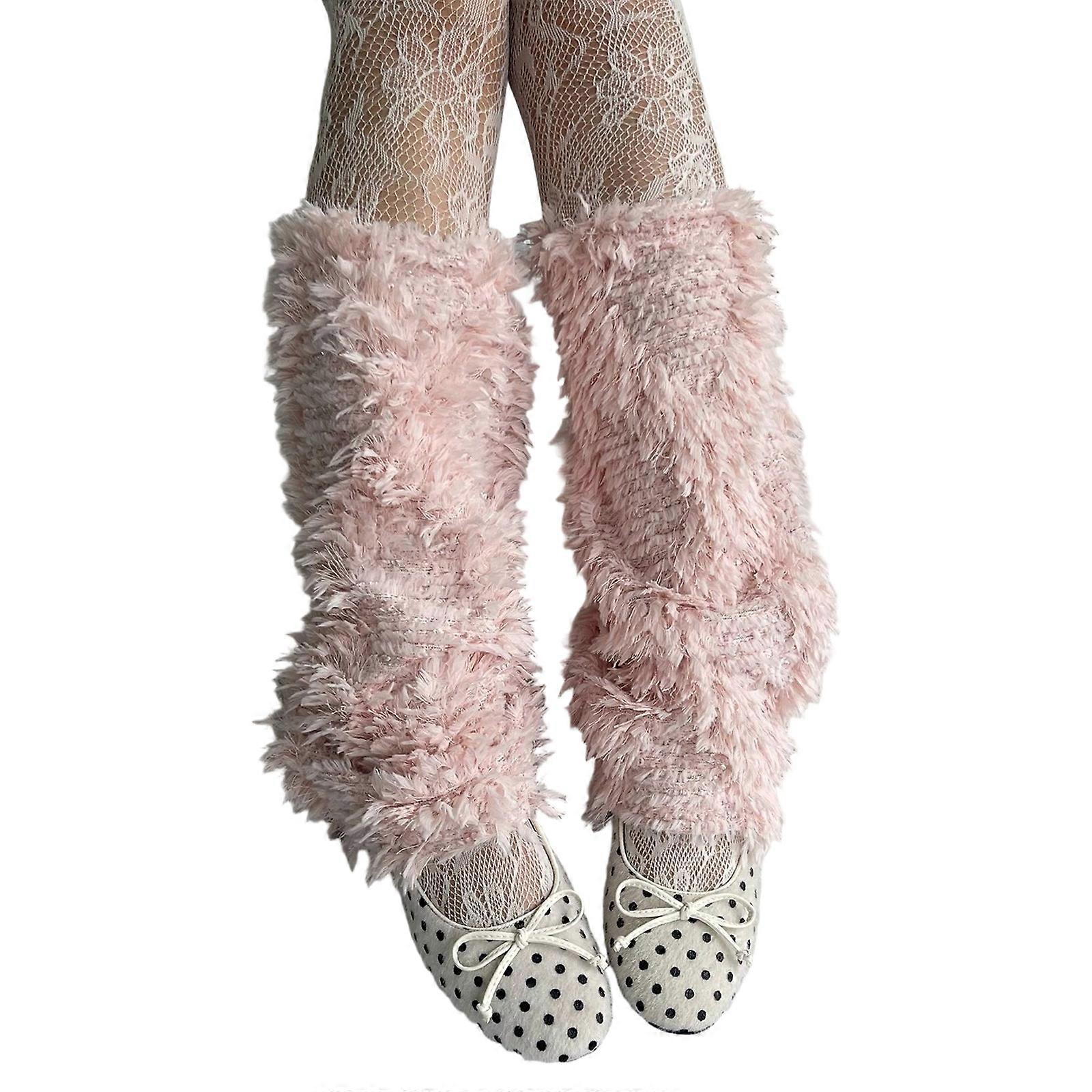 Women Plush Furry Plush Leg Warmers Nonslip Elastic Top Stacked Style Fashion Accessory For Fall And Winter Outfits Pink
