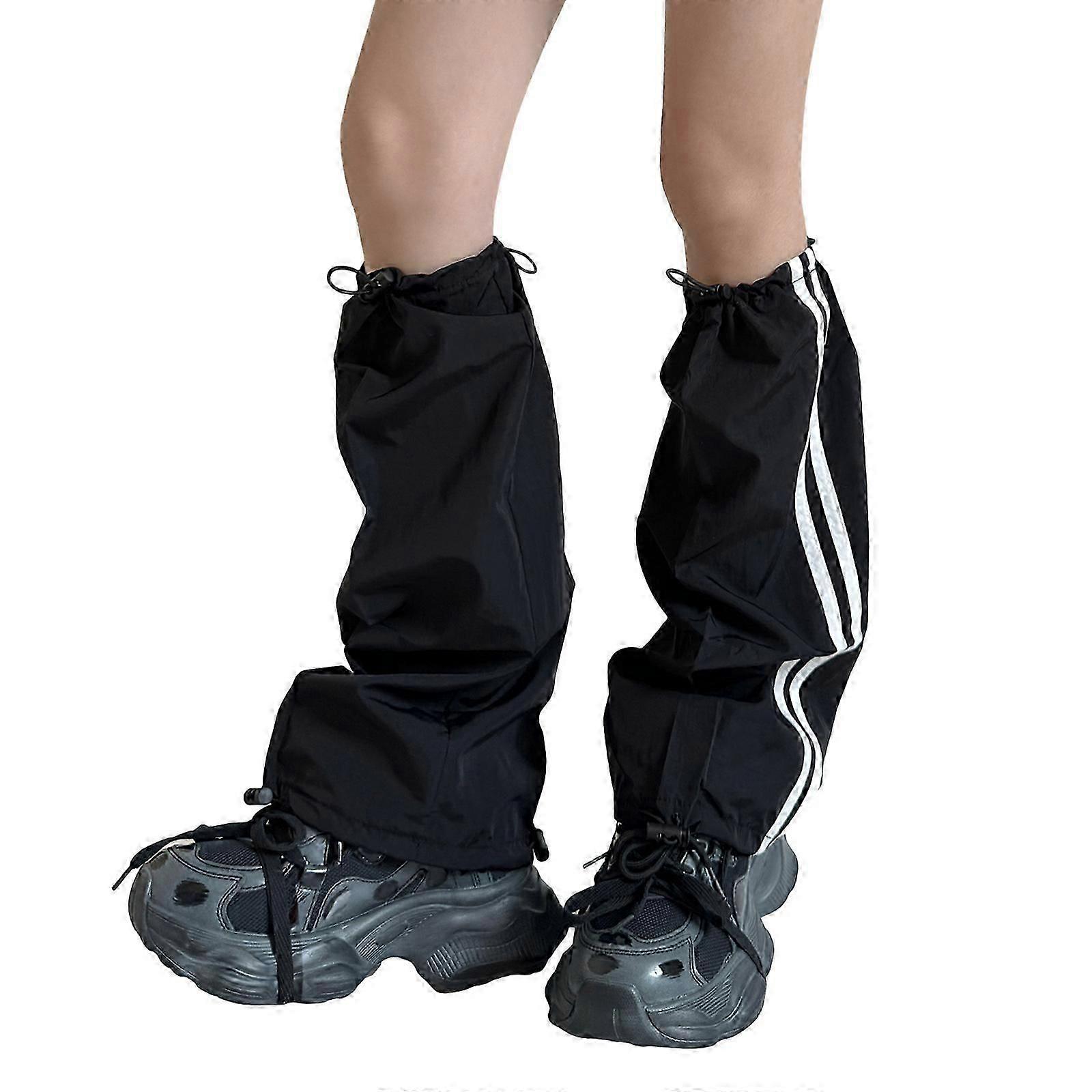 Women's Baggy Leg Warmers with Drawstring Harajuku Cargo Stripe Foot Cover White