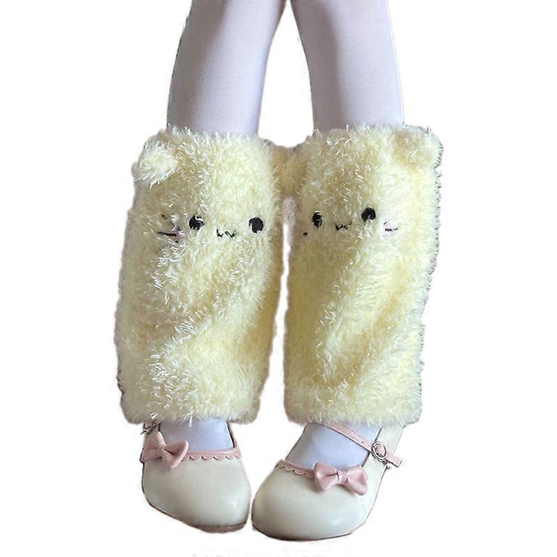 Women Aesthetic Thermal Fuzzy Leg Warmers Japanese Cute Cats Ears Faux Furs Foot Covers Footless Long Socks Streetwear Yellow