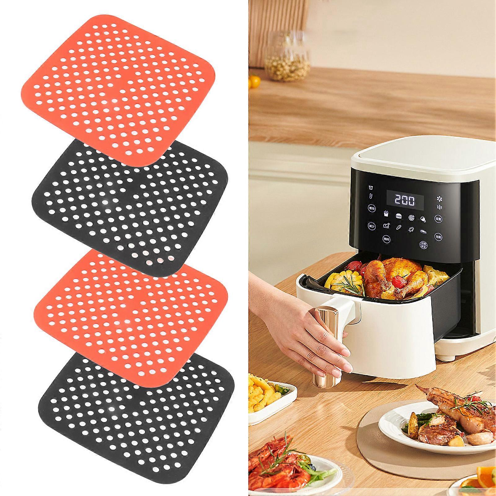 Reusable Air Fryer Mats Stick Proof Dishwasher Safe Oil Resistant Silicone Air Fryer Liner for Oven Red Black 4pcs 18.5cm/7.3in