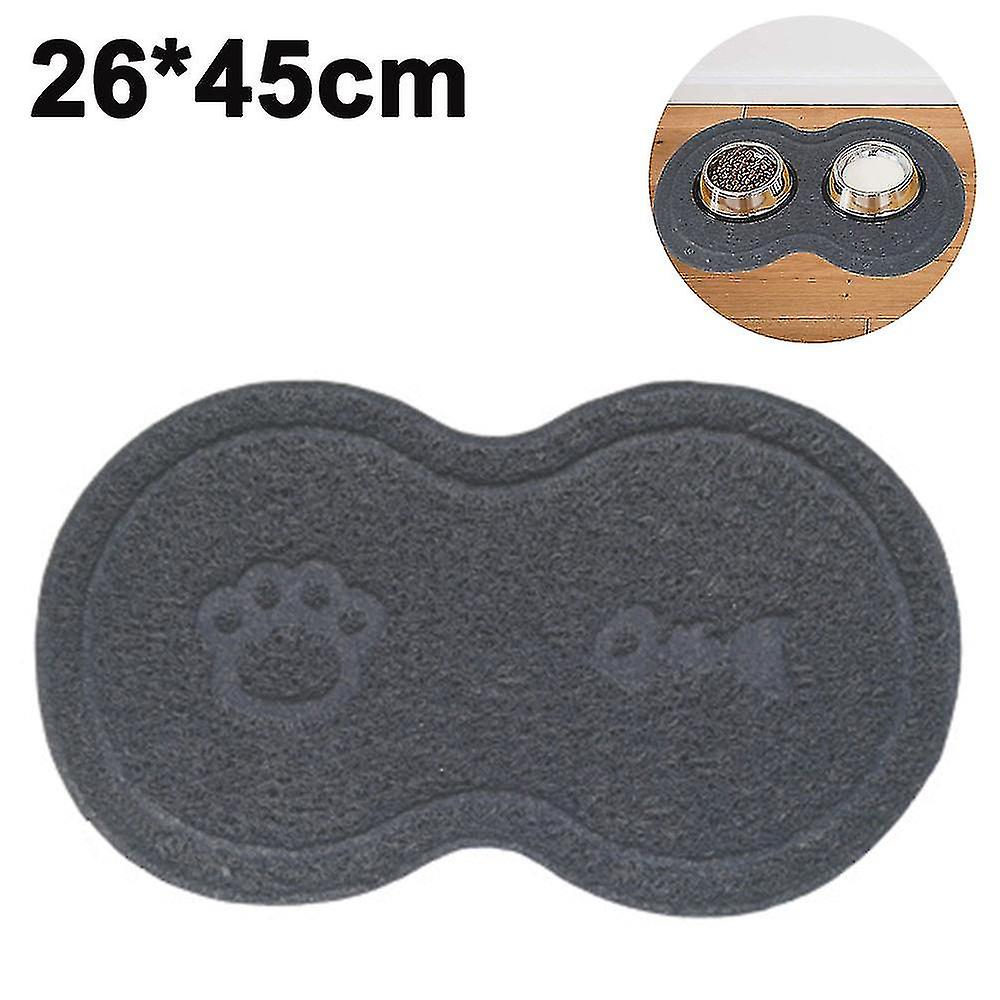 Product description Size: 45*26cm Color: gray, blue, green Material: PVC Package content: 1*8-shaped cat litter pad 1.Keep Mealtimes Tidy Large Area with Raised Lip keeps the water off the floor and the food from rolling everywhere, especially great for pets that knock over their food or drip their water everywhere 2.Non Skid Mat to Protect FloorAnti-skid surface design prevents bowl from sliding when your pet eating, keeping the bowls securely in place for damage spots on floor 3.Soft Flexible Silicone Mat Made of premium, non-fade silicone, soft texture and vivid colors, easy to roll up and hang 4.Easy to Clean Super easy to clean due to its smooth surface, use dishcloth or sponge with the dishwashing liquid, rinse it in clean water and let it air dry, dishwasher Safe. 5.Fine artistry your pet feel soft and comfortable, it is durable and with a beautiful view.