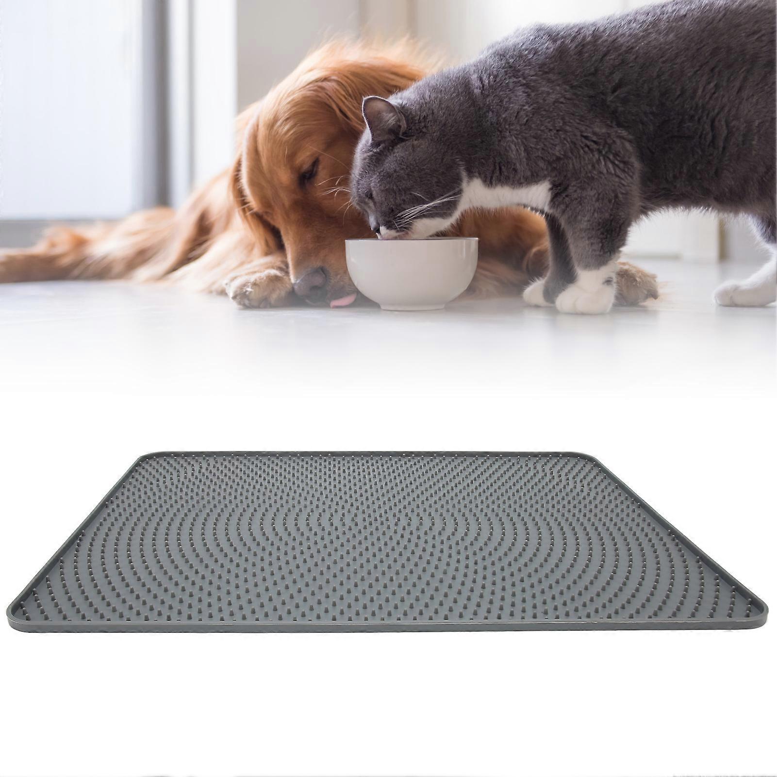 Pet Feeding Mat Food Grade Silicone Waterproof Slip Resistance Dog Food Mat with Edges for Wood Floor Carpet Grey