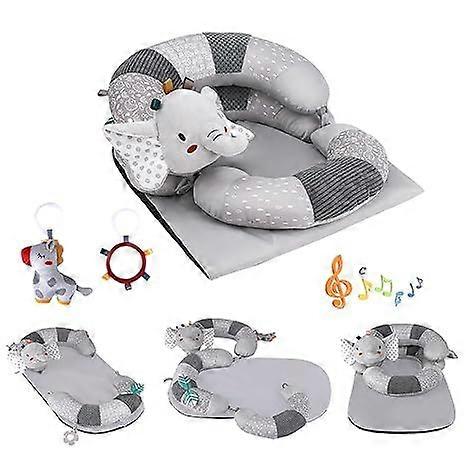 3-in-1 Tummy Time Mat and Baby Lounger with Detachable Support Pillow, Portable Playmat for Newborn Boys and Girls (Grey)