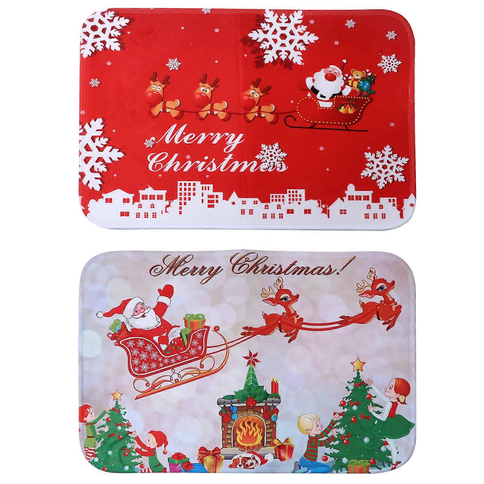 Water Absorbing Mat Rectangular Flannel Material Christmas Design Cushion 23.58x15.72 Inch 2Pcs
