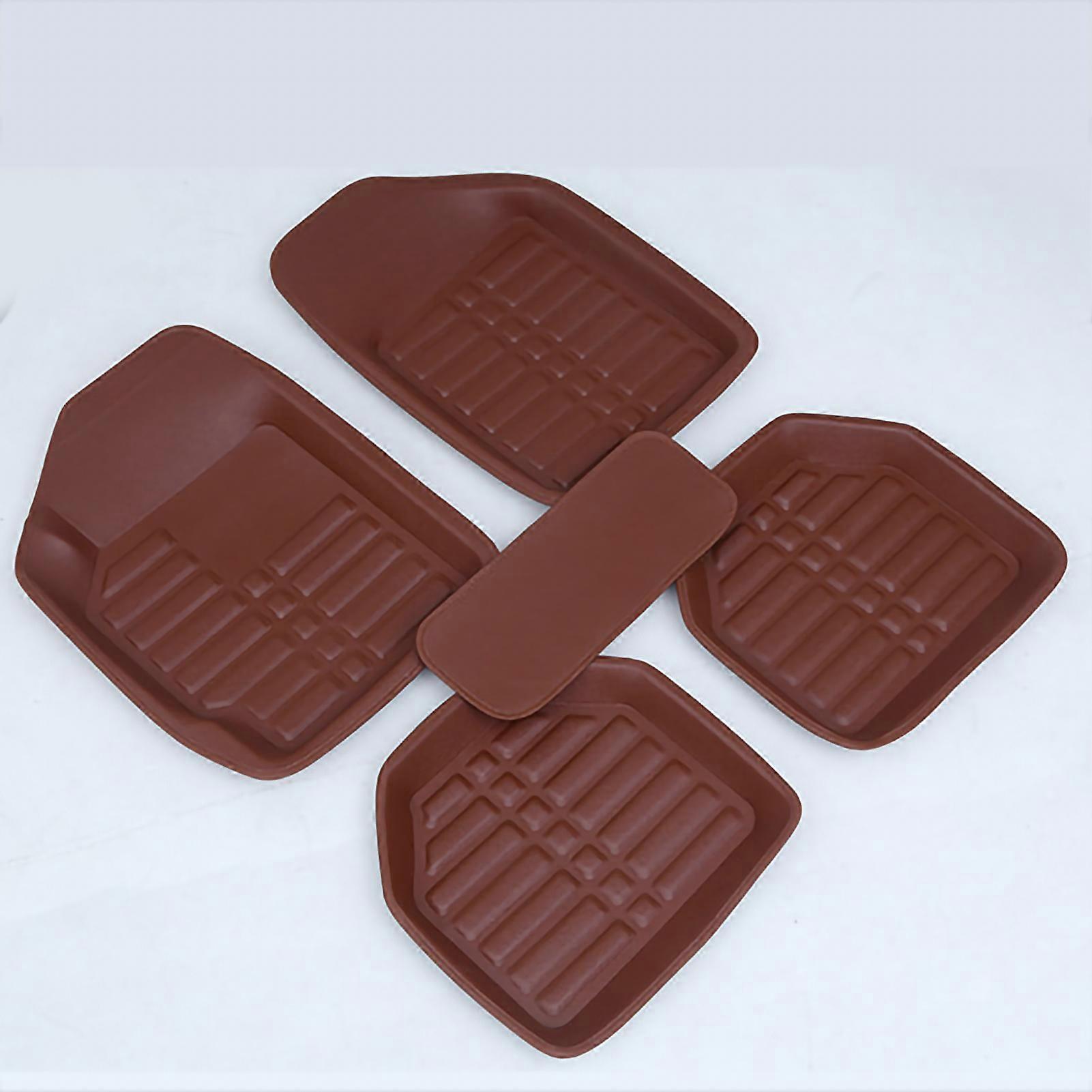 Universal Car Floor Mat Indentation Full Surround Car Floor Mat Waterproof Wear Resistant Leather Car Floor Pad dark Brown