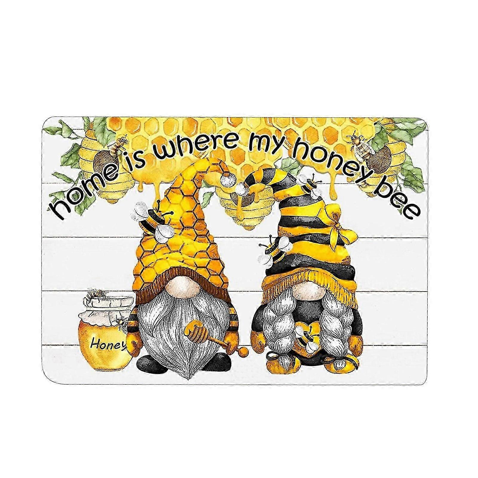 Sunflower Bee Gnome Print Floor Mat Washable Decorative Doormats Non Slip Mat