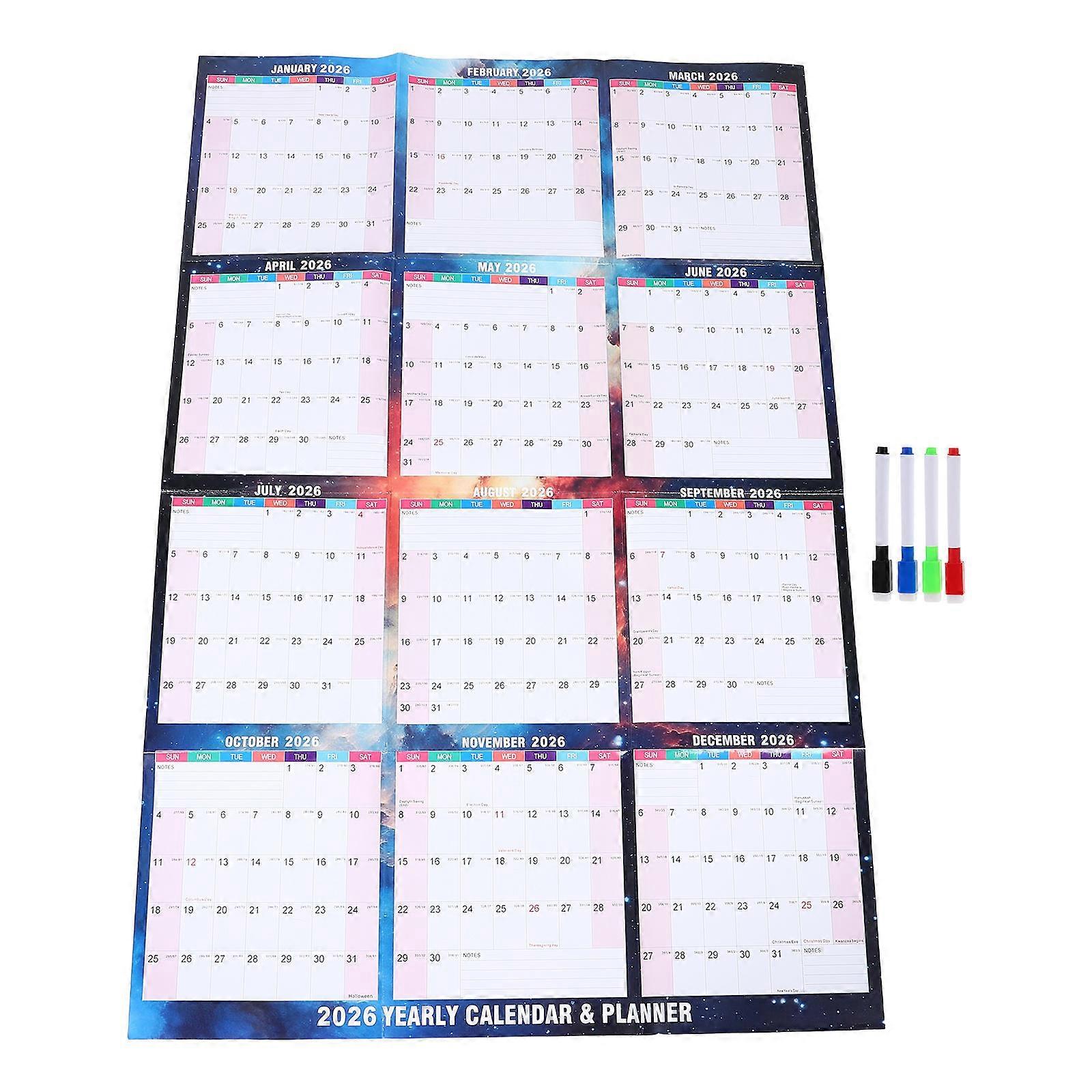 This wall-mounted calendar is an essential tool for effective time management. Its erasable surface ensures that you can easily adjust plans as needed, while the spacious layout provides plenty of room for detailed notes. Ideal for both personal and professional use, it helps you maintain a clear overview of your schedule at all times. Features -Color:Dark Blue -Material:Paper -Size:86.36X61.00X0.20cm/33.94X23.97X0.08in -Doublesided functionality: utilize both sides of the calendar for maximum efficiency, offering more space for detailed planning -Ecoconscious design: reduce paper waste with a reusable calendar that supports sustainable living and long term use -2026 overview: with a complete year’s schedule on one sheet, suitable for annual planning and goal setting -Ideal for busy families: coordinate family schedules effortlessly, ensuring smooth communication and organization for everyone -Suitable planning: the erasable surface allows for quick adjustments, making it easy to adapt to unexpected changes Package list: 1 x calendar 10 x stickers 4 x pens