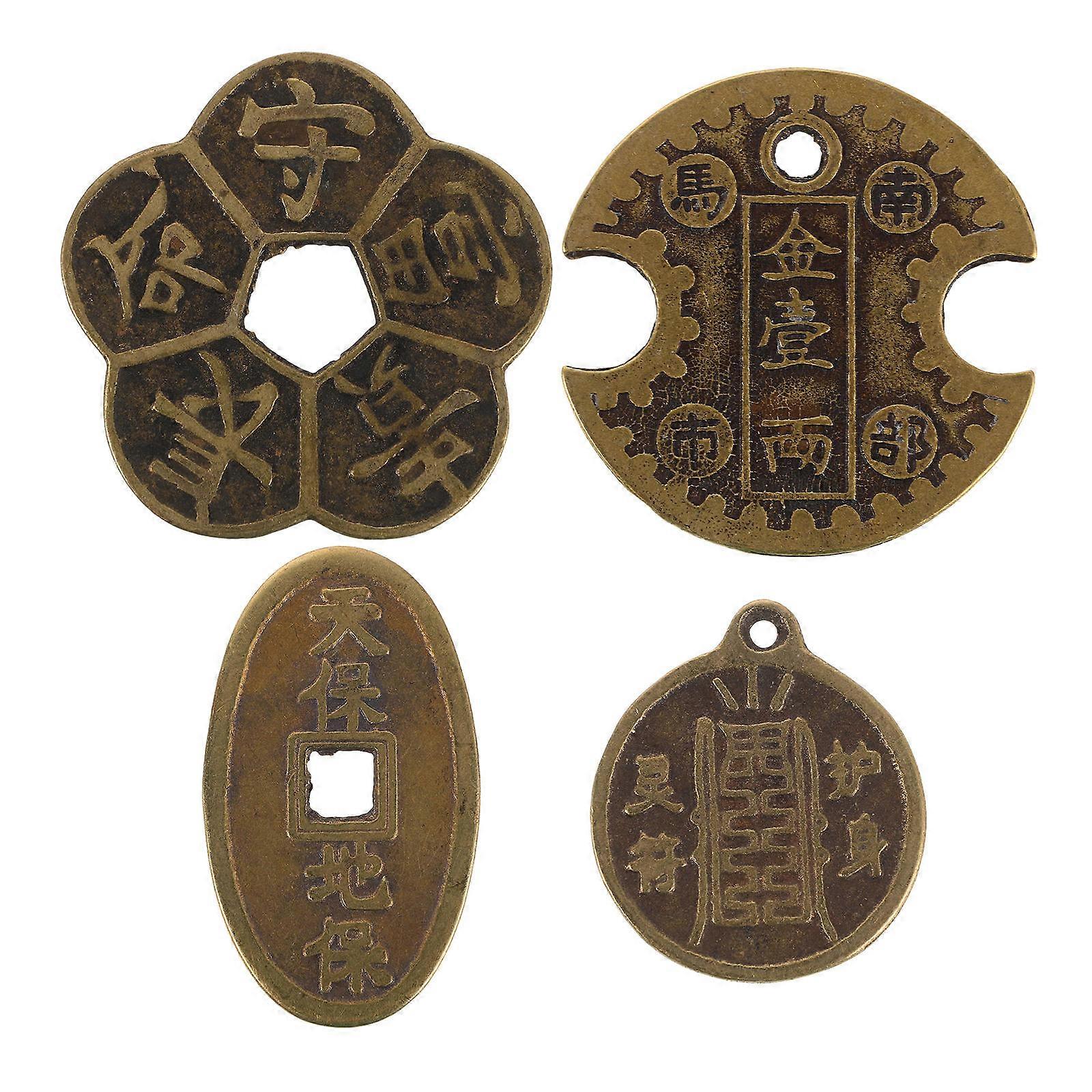Lucky I Ching Coins Wealth Symbol Traditional Chinese Style Round Brass Good Luck Charm 4Pcs
