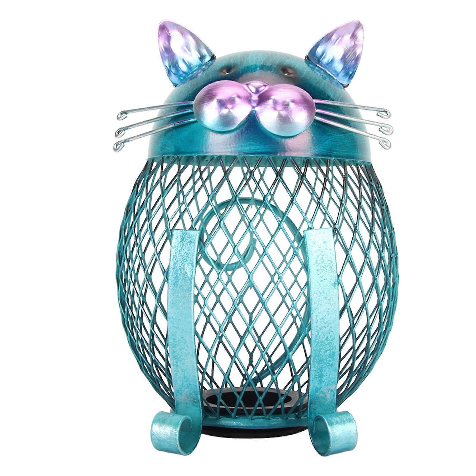 Metal Cat Coin Piggy Bank for Adults Visible Handcrafted Cute Animal Money Bank with Bottom Cover for Home Living Room