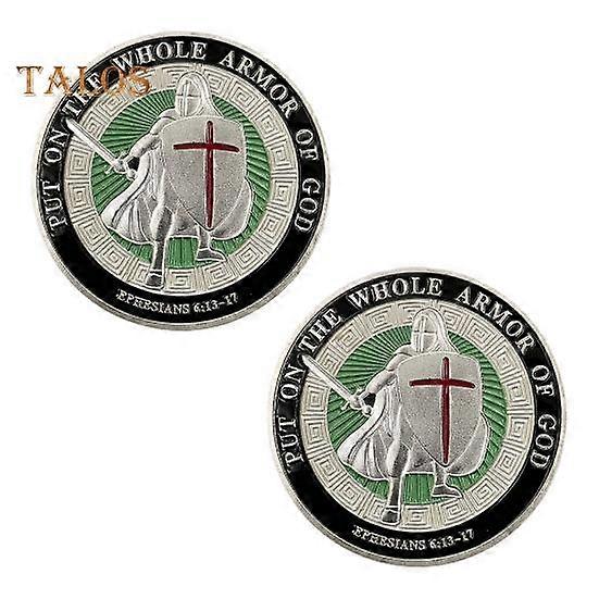 The double-sided design of these coins makes them perfect for personal use or sharing messages of faith with friends and family. Each coin features intricate carvings and powerful Christian messages like 'put on the whole armor of God', serving as a source of daily motivation and spiritual strength. These coins serve as meaningful souvenirs, offering a thoughtful reminder of faith and support for the Christian community and armed forces. Whether kept as a personal keepsake or given as a precious gift to loved ones, these challenge coins are a symbol of unwavering faith and solidarity.