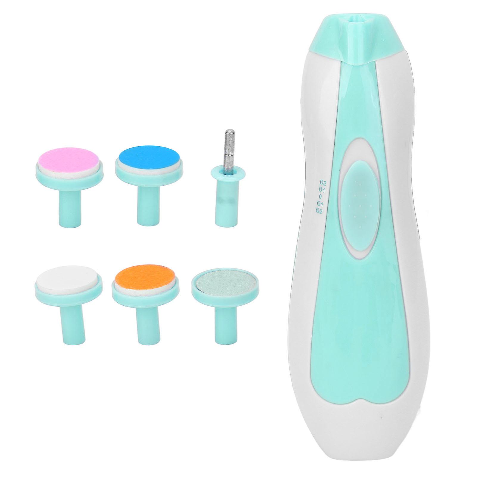 Baby Electric Nail Grinder Low Noise Manicure Care Portable Infants Nail File with 6 Grinding Head Sky Blue