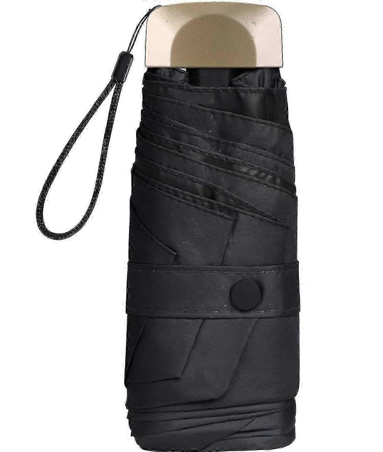 Mini Umbrella, Black Rubber Cloth & 6 Aluminum Alloy Ribs, Foldable Compact Travel Umbrella, Rain And Sun Umbrella