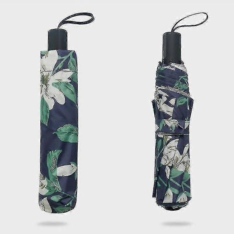 Lily flower sun umbrella folding sunny umbrella sunshade black glue sunscreen and UV protection female umbrella female retro forest series, lily umbrella valgus straight edge Umbrella cloth material: impact cloth Note: Manual measurement, there may be 1-2cm\/1-3g error, which is not a quality problem. Due to different screen displays, there may be a color difference between the real object and the picture. Delivery Quantity: 1PCS
