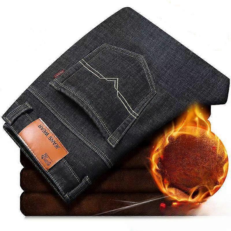 Plus Size Men's Winter Warm Jeans Business Casual Straight Loose Trousers Male Brand Pants