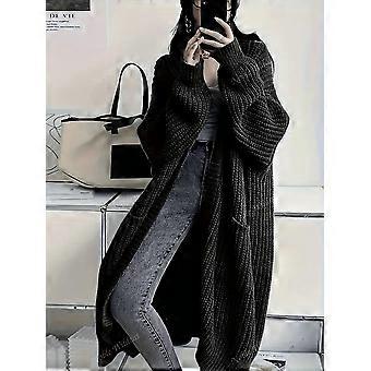 מידות גדולות נשים כיסי צווארון V שרוול ארוך סריג מצולע סוודר קרדיגן