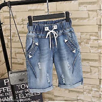 Large Size Women Summer Students Denim Shorts Female Five Points Wide Leg Harem Trousers Drawstring