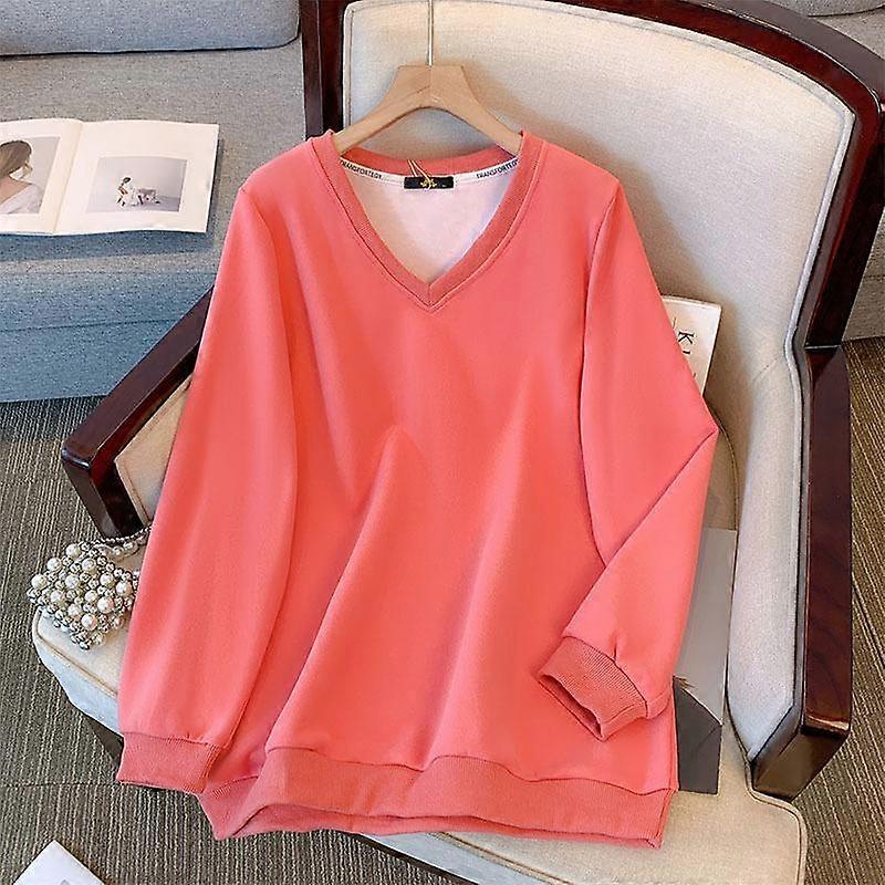 Plus Size Women's Sweatshirt Solid Colour Casual V-Neck Long Sleeve Top Loose Sweatshirt