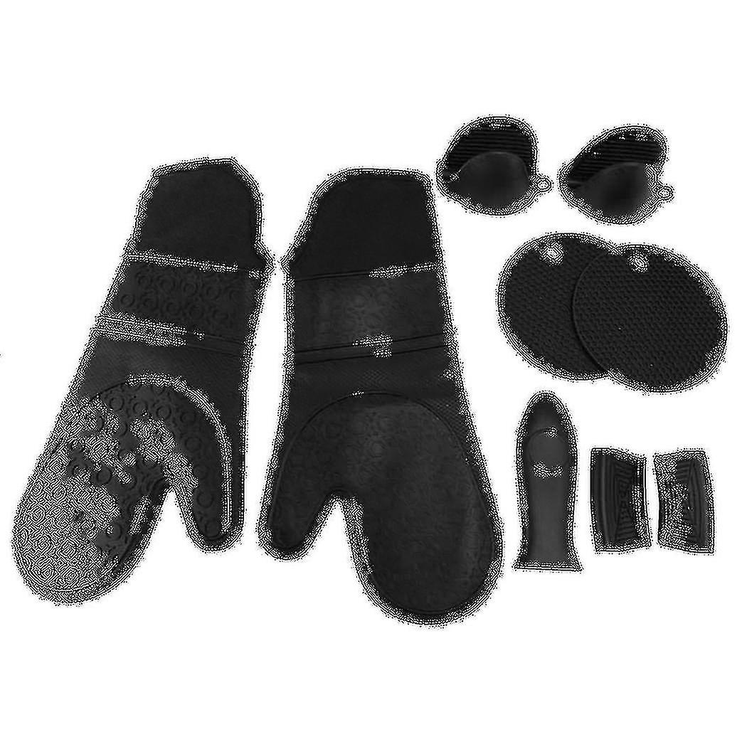 A complete set of 9-piece oven gloves and potholder set-Silicone oven gloves protect hands and forearms from hot kitchen utensils and boiling water.
