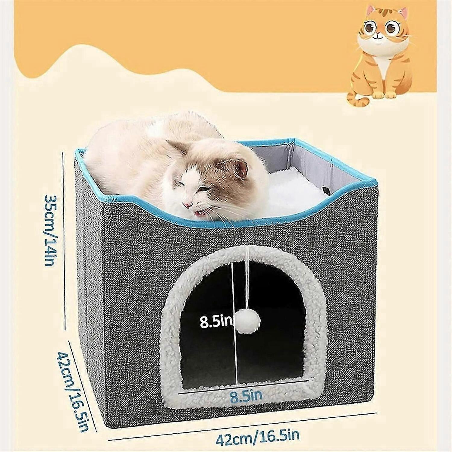 Large Cat Bed with Ball Hanging and Scratch Pad Foldable Cat Beds,A