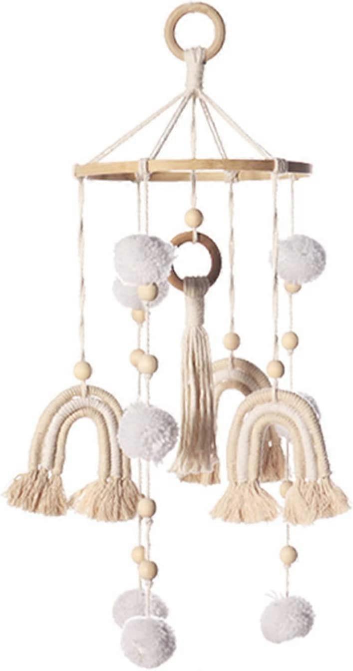 Rainbow Crib Bed Bell Wind Chime Mobile Baby With Pom Pom Kids Hanging Crib Mobile Wind Chime