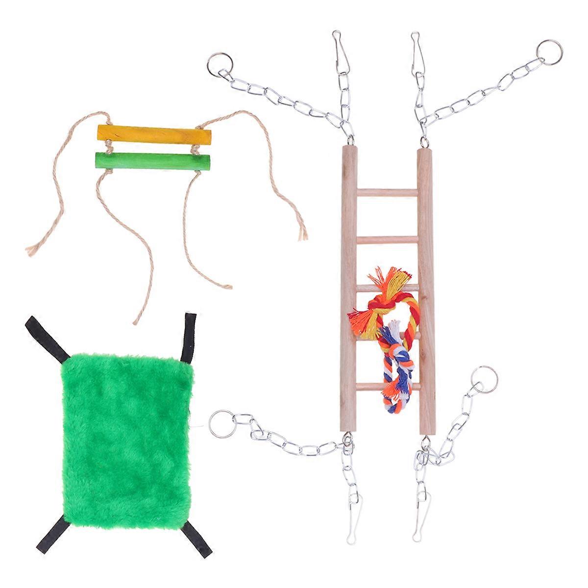 Pet Hanging Bed Wooden Hamster Parrot Ladder Swing for Small Pets 2Pcs