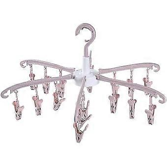 Flm Clips Folding Dryer - Portable Folding Clothes Dryer Clothes Rack With 18 Clips For Socks And Underwear, Pink