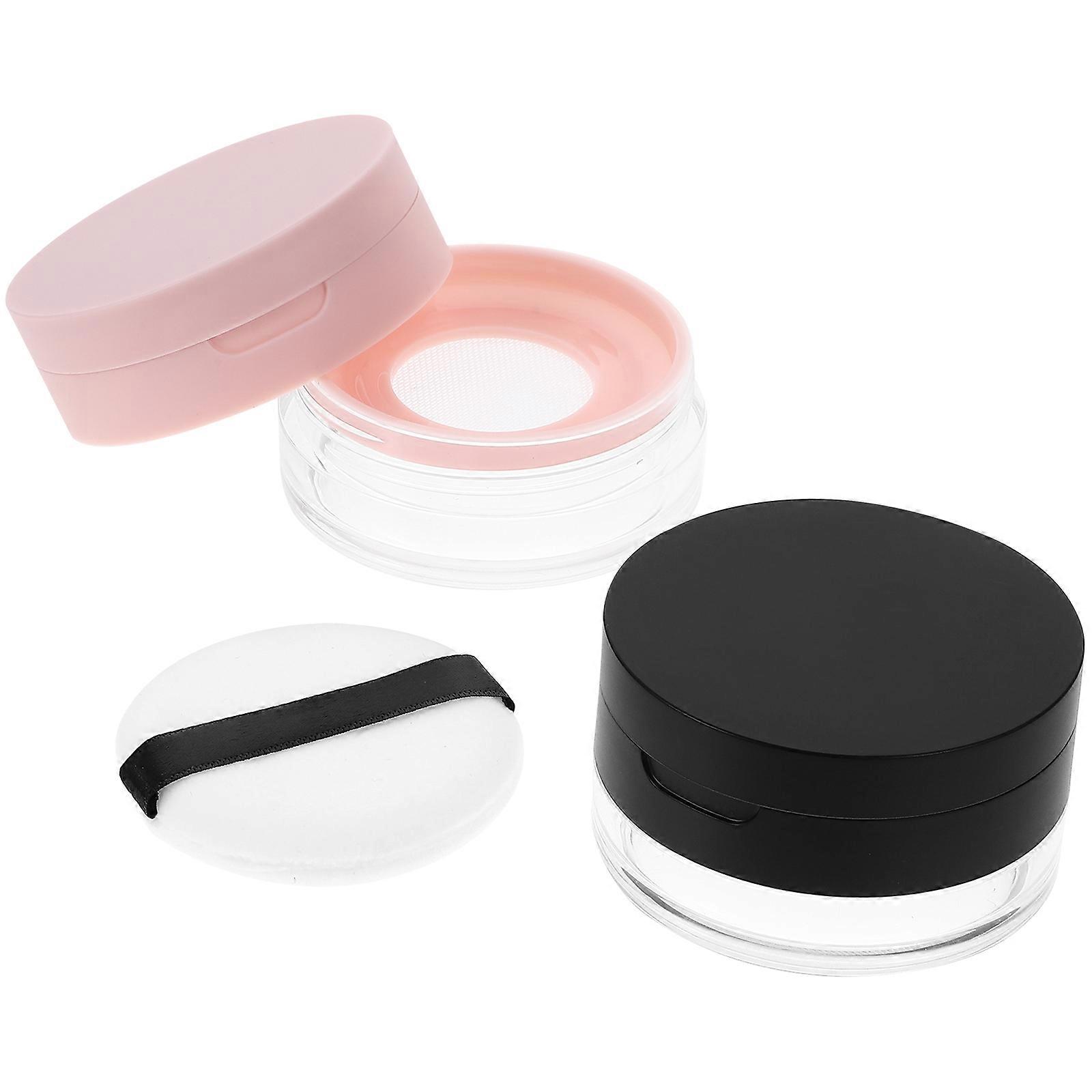 Portable Loose Powder Container with Puff and Mirror, Travel Friendly Makeup Powder Box for Setting Powder and Blush, 2pcs