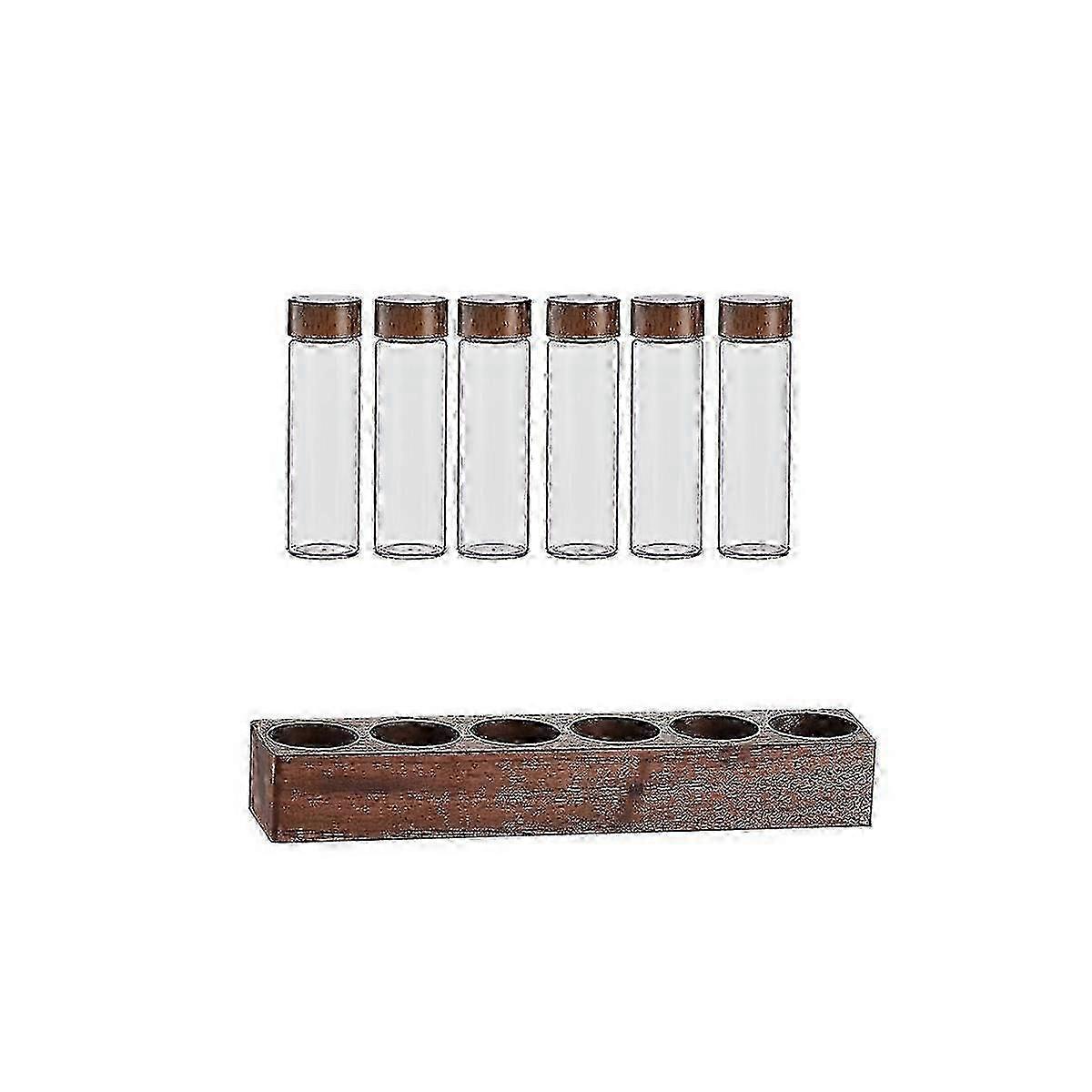 Glass Coffee Beans Storage Container with Walnut Display Rack - Test Tube Bottle for Coffee, Tea & Espresso Storage