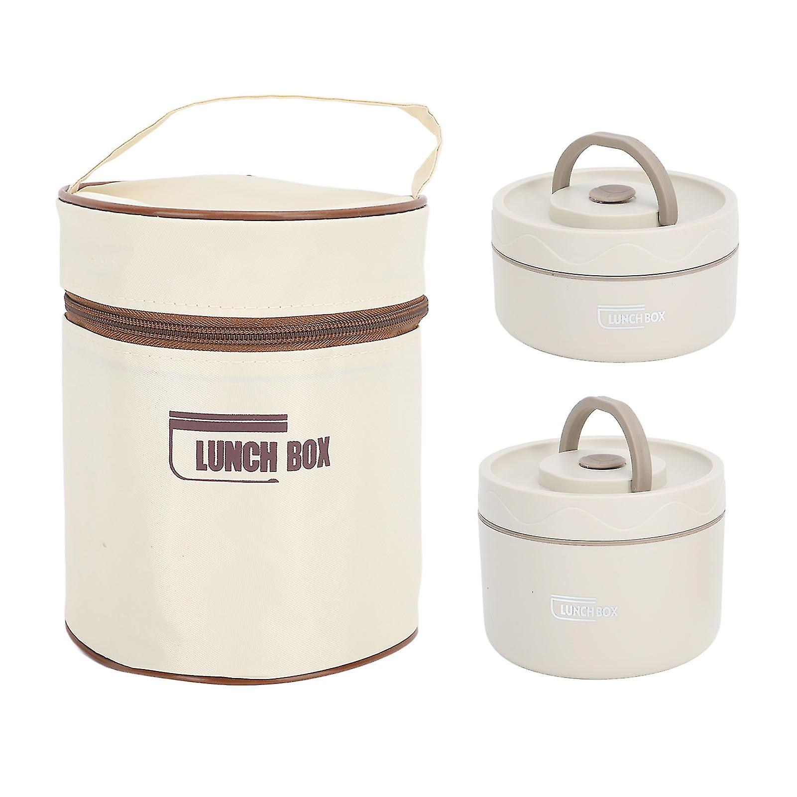 Insulated Lunch Container 304 Stainless Steel Leakproof Thermal Bento Box with Lid, Portable Round Food Jar for Kids Adults, Thermal Bag Beige 2PCS