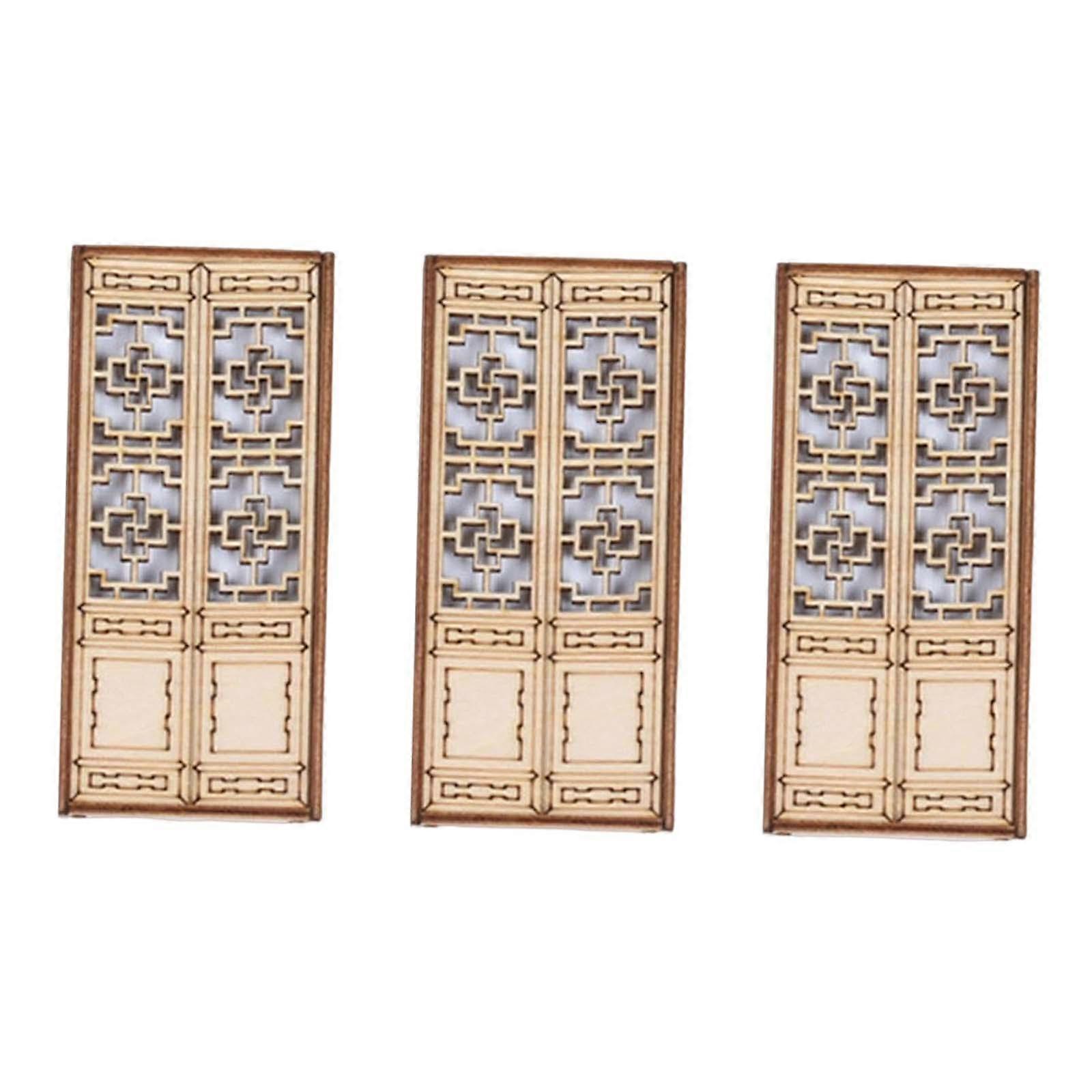Miniature Wood External Hollow Door Furniture Screen Life Scene for Garden