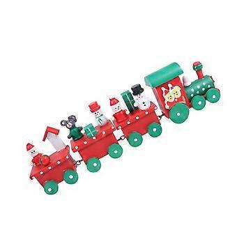 Mini Four-section Wooden Train Creative Train Toy Desktop Ornament Colorful Painted Christmas Cartoon Train Kids Table Window Decoration Supplies