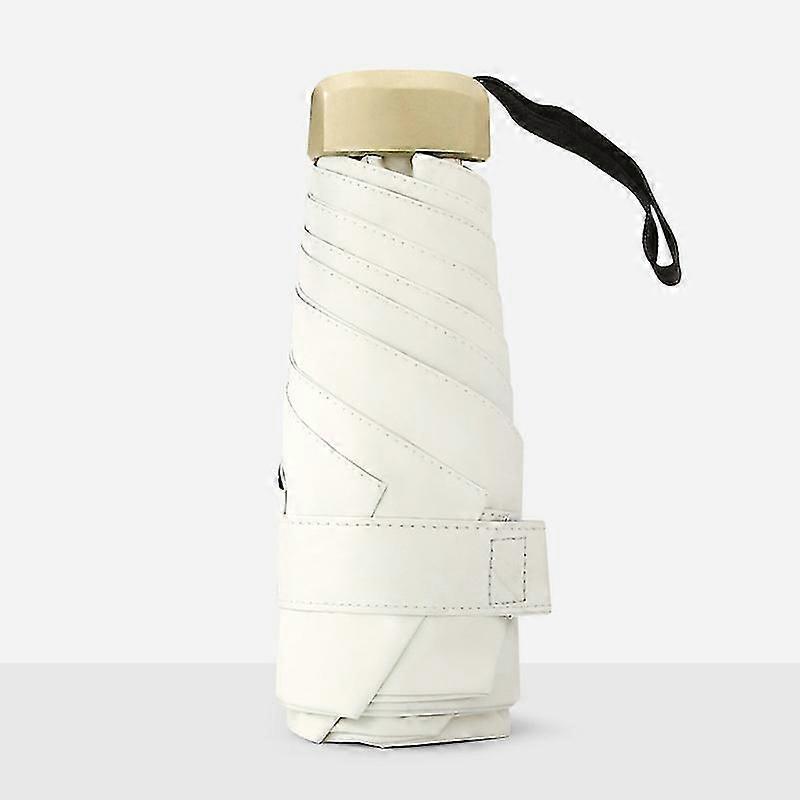 Mini Umbrella, Pocket Umbrella Whitewith Golden Handle, Black Rubber Cloth & 6 Aluminum Alloy Ribs